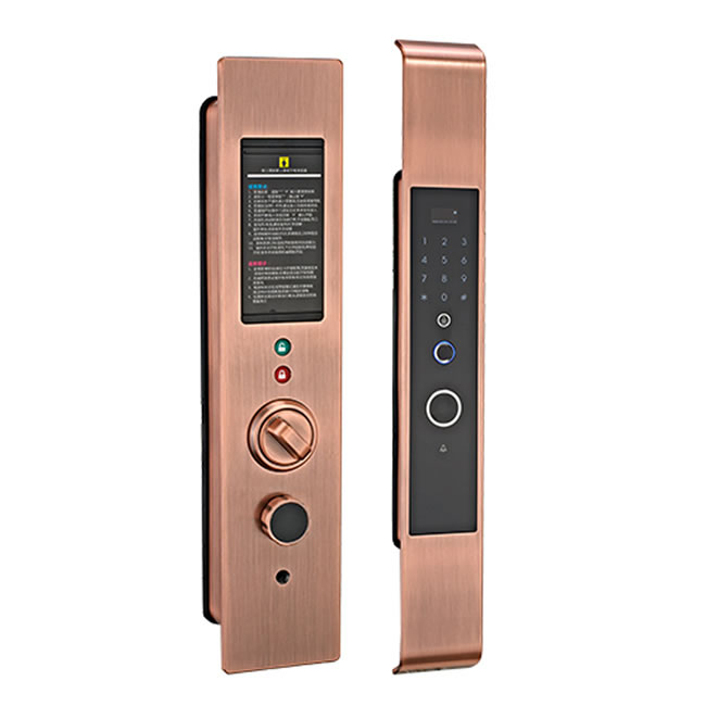 產品優勢:金融級活體半導體識別模塊、滑蓋智能復位、C級防盜鎖芯、防窺視虛位密碼、室內機械反鎖