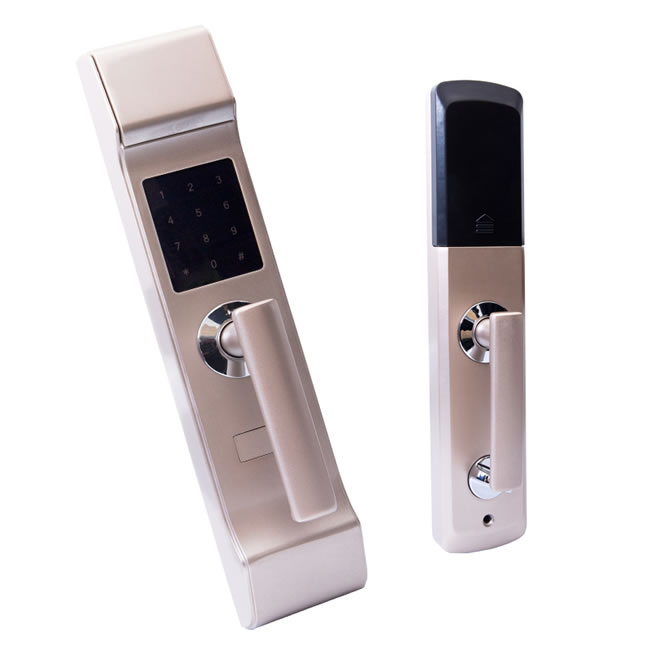 產品優勢:指紋+密碼+磁卡+機械鑰匙開鎖+臨時密碼+手機遠程開鎖、超C鎖芯、低電報警、系統鎖定報警