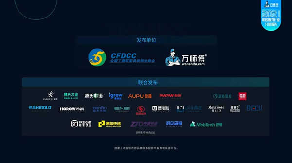 基于以上行業(yè)背景,萬師傅平臺(tái)《2021家居服務(wù)行業(yè)分析報(bào)告》于2022年4月9日正式發(fā)布。據(jù)悉,該報(bào)告由萬師傅平臺(tái)與全國(guó)工商聯(lián)家具裝飾業(yè)商會(huì)共同發(fā)布,慕思、林氏木業(yè)、源氏木語、愛果樂、奧普、盼盼、優(yōu)梵藝術(shù)、原始原素、A家家居、悍高、希箭、亞太天能、ENS、玥瑪安防、便潔寶、心海伽藍(lán)、艾仕臣、普賽羅、BECK智能鎖、順豐快運(yùn)、德邦快遞、中通快運(yùn)、洞見研報(bào)、MobTech袤博等品牌聯(lián)合發(fā)布。