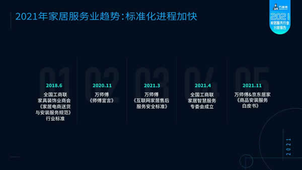 據(jù)了解,《2021年家居服務(wù)行業(yè)分析報(bào)告》通過萬師傅平臺(tái)獨(dú)家數(shù)據(jù)統(tǒng)計(jì)及市場(chǎng)調(diào)研分析生成,期望為家居行業(yè)轉(zhuǎn)型升級(jí)之路提供可靠參考。作為家居服務(wù)業(yè)領(lǐng)航者,萬師傅平臺(tái)自2016年以來持續(xù)輸出真實(shí)行業(yè)數(shù)據(jù)與優(yōu)質(zhì)調(diào)研成果,協(xié)同家居企業(yè)、物流公司等行業(yè)伙伴一起預(yù)見行業(yè)發(fā)展趨勢(shì),把握數(shù)字經(jīng)濟(jì)帶來的發(fā)展機(jī)遇,賦能中國(guó)家居行業(yè)轉(zhuǎn)型升級(jí)。