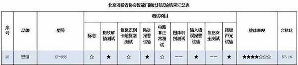 2022年1月18日,北京市消費者協會發布的智能門鎖比較試驗結果顯示,忠恒一款型號為KF-666和科裕一款型號為918L-A80-F的智能鎖,在首次檢測時安全可靠性測試存在問題,其中忠恒在標志、信息識別卡防復制測試、電路非正常測試等3項指標不達標,在39款受測的品牌產品中合格比僅為57.1%,排在倒數第七,科裕則在指紋解鎖測試、信息識別卡防復制測試、防拆報警試驗、電路非正常測試、輸入錯誤報警試驗、信息安全測試等6項指標不達標,在39款受測的品牌產品中合格比僅為25%,排在倒數第一。
