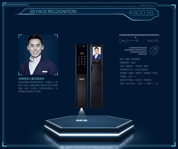2020年中之際,專業(yè)智能鎖品牌KFZ重磅發(fā)布K8003B新款智能門鎖,以3D結(jié)構(gòu)光人臉識(shí)別、可視貓眼遠(yuǎn)程開鎖功能,不可復(fù)制、無接觸的特點(diǎn),創(chuàng)新引領(lǐng)行業(yè)邁向3D智能鎖人臉時(shí)代。